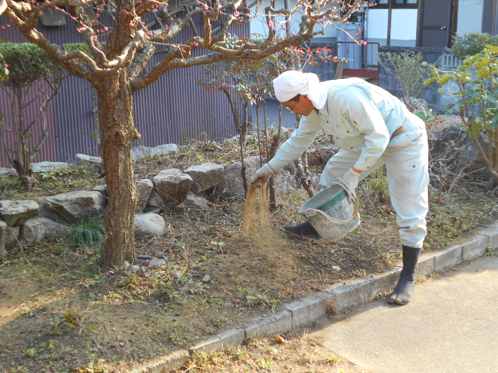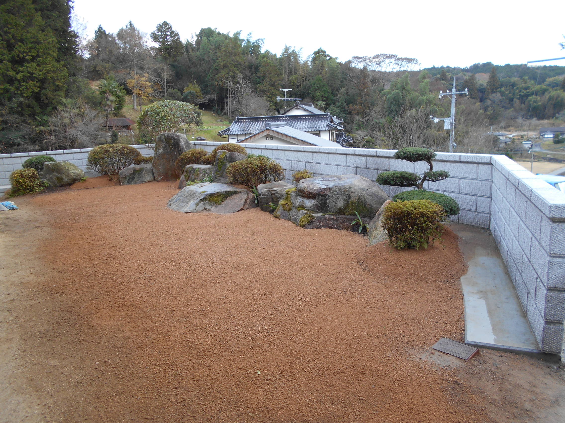 作庭・石積の他にも、このような仕事もしています! どうぞ お気軽にご相談下さい! 冬季(1月~2月)の施肥・薬剤散布 墓地造成工事 カーポート設置工事 竹垣(合成竹)据付工事 防草シート張付工事 コンクリート舗装工事 駐車スペースの造成工事 庭のリフォーム工事