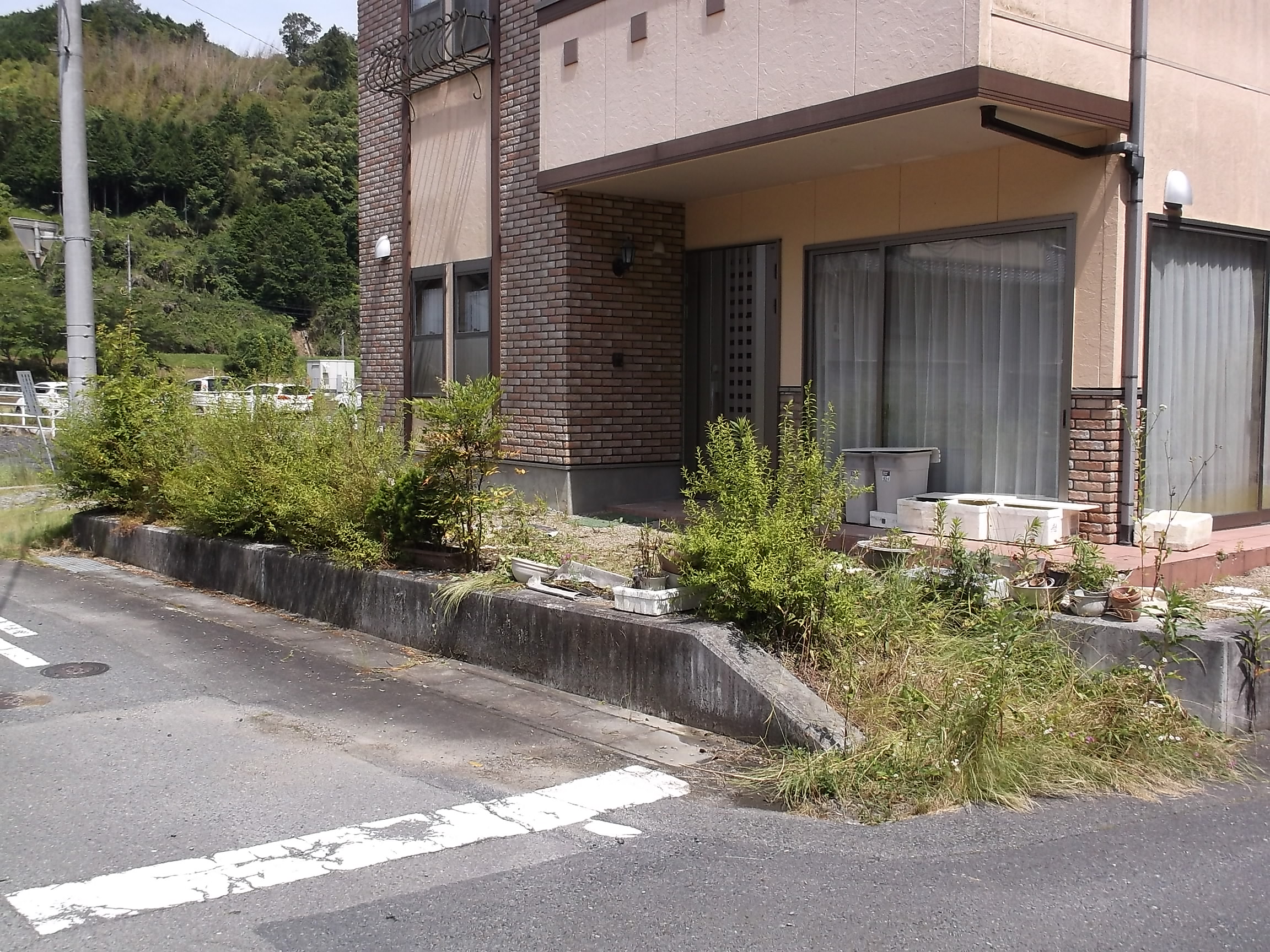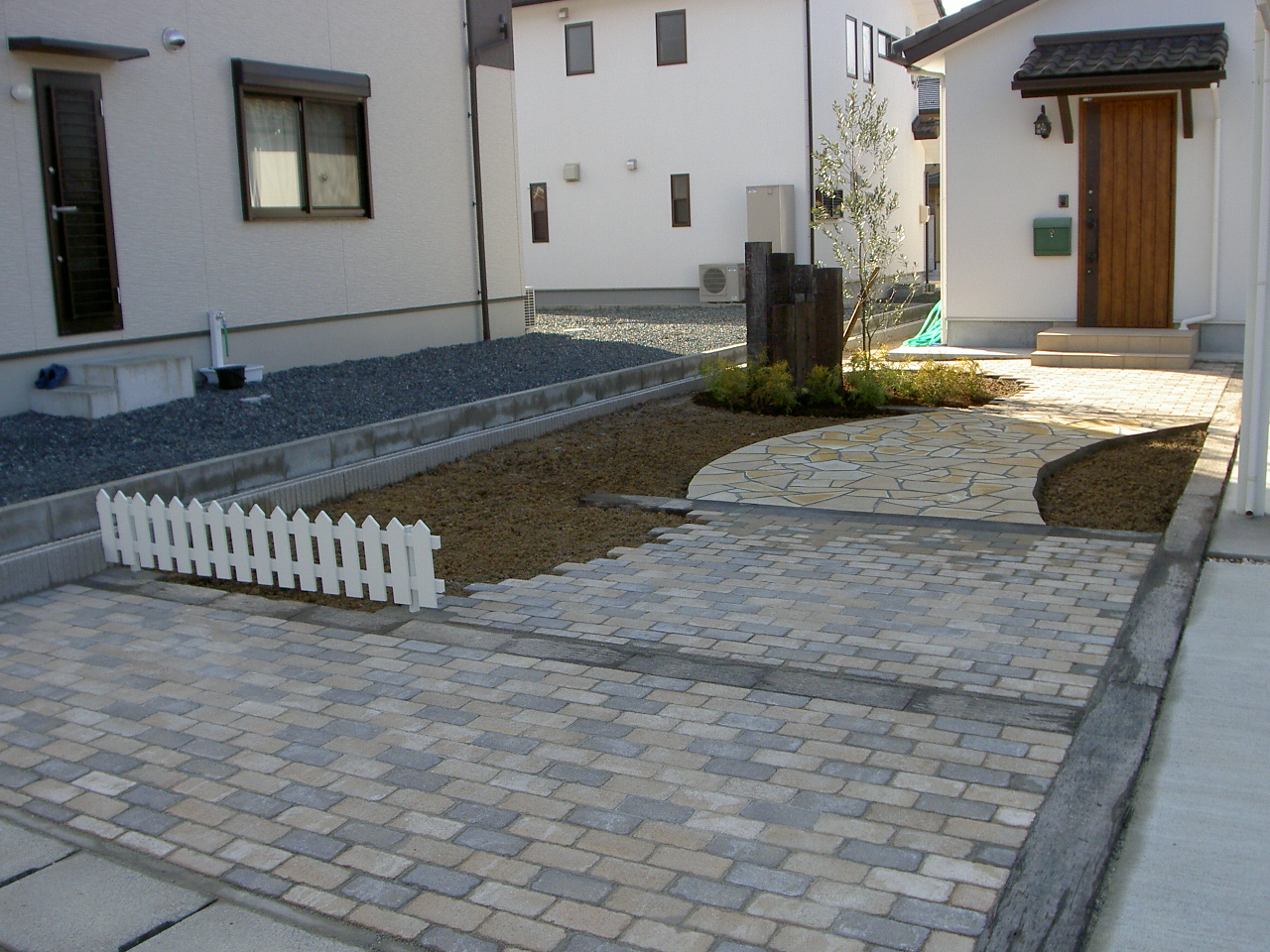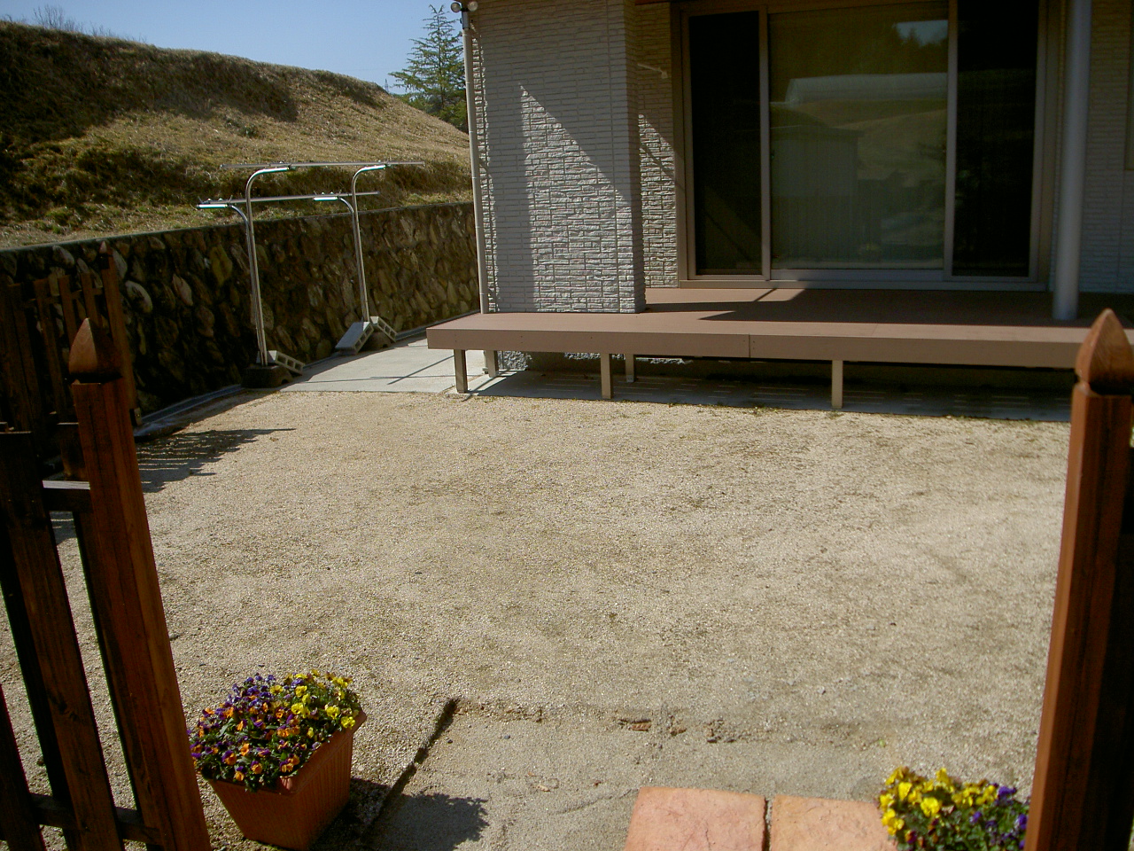 施工前の状況。敷地への出入り口がはっきりしない為、通路を重点に置いて計画。外回りの外構も一緒に施工した。
